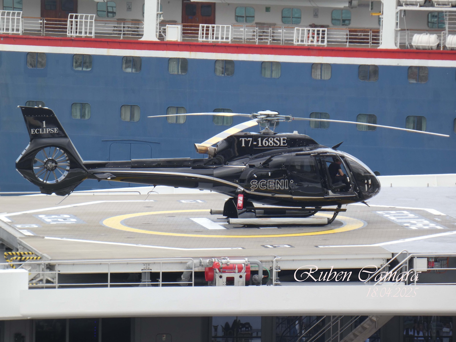 Ao total foram três passeios de 15 minutos de duração com passageiros a bordo, o helicóptero veio em todas elas a sobrevoar o porto tanto à saída como à chegada e dirigir-se depois para os pontos mais altos da ilha e a zona montanhosa do Cabo Girão. Estas atividades chamaram muitos curiosos e transeuntes ao Cais Norte, onde se encontrava atracado o navio. O Scenic Eclipse estará amanhã fundeado na Vila Baleira, Porto Santo.